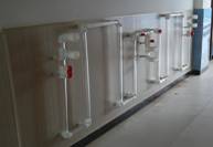 每米设一出、入水口,小朋友通过控制阀门,能控制水走不同的流向和出水口。 |