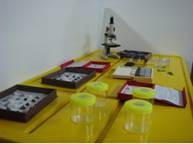 利用实验器材(放大镜、显微镜、动植物标本)讲解一些生物学方面的简单知识及有趣的生物现象,让小朋友看一看、体验一些微观世界是什么样子的。其实有许多生物,植物的微观 世界是很有规律、很美的。(晶体:食盐、明矾、石英、冰糖、味素等等。 (玻璃切片:动植物的细胞、血液、 组织等等。植物标本:各种树叶、花瓣、草叶、颈、根等。放大镜4台、显微镜2台 |