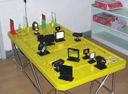 14个光学实验配置,材料配置为每个实验材料四套,如需配置多套实验材料,价格另议,含平行光源、凹透镜、凸透镜、凹面镜、凸面镜、三楞镜、屏幕、潜望镜、万花筒等。 |