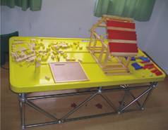 各类滑轮组合,让小朋友体验力的方 向和滑轮组合不同会让拉力大小不同,3种力的变比,动滑轮省力实验。 |